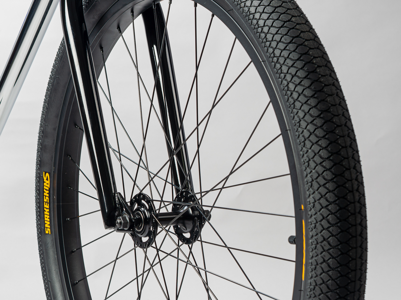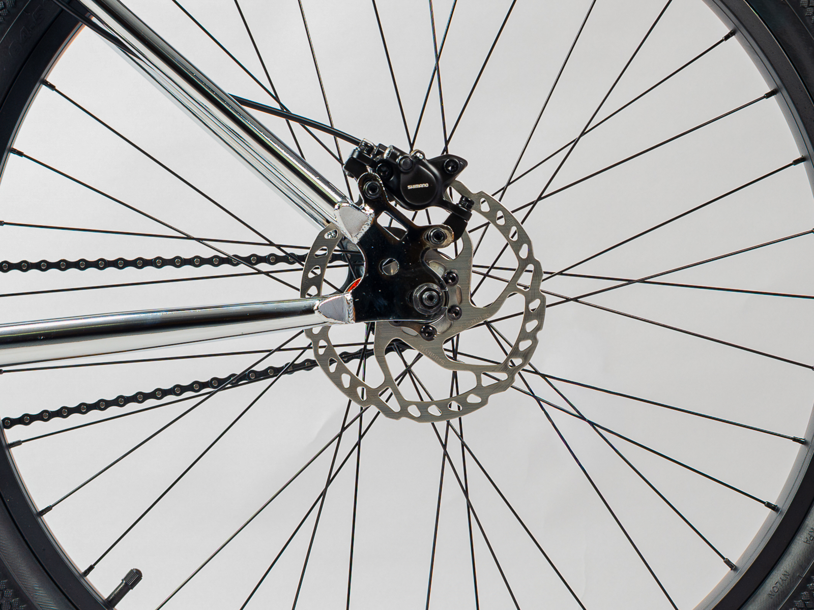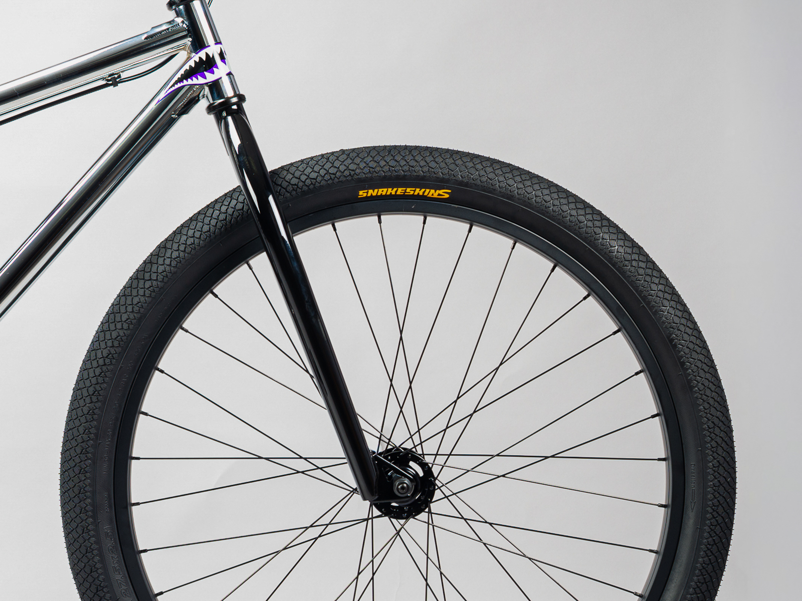 Pushing boundaries to make sure this bike is super-easy to control on the back wheel, we included a Shimano MT200 hydraulic rear brake and our Snakeskin Stickies tyres (which are designed for swerving).
